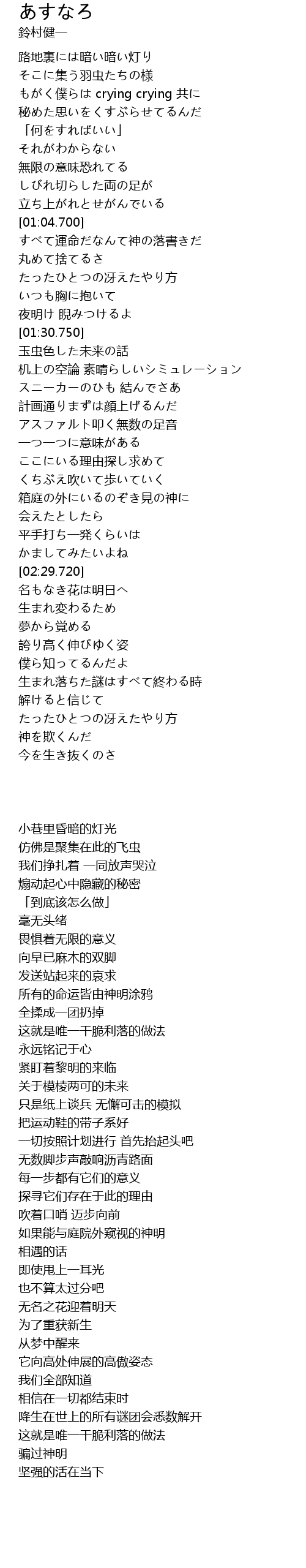 Audio CD Release Date August 24, 11(JAPAN) Lantis Official Facebook https//wwwfacebookcom/lantisjp?ref=hl鈴村健一の「あすなろ」歌詞ページです。作詞鈴村健一,作曲宮崎誠。神様のメモ帳 エンディング (歌いだし)路地裏には暗い暗い灯り 歌ネットは無料の歌詞検索サービスです。 Listen to あすなろ on Spotify 鈴村健一 Song 14